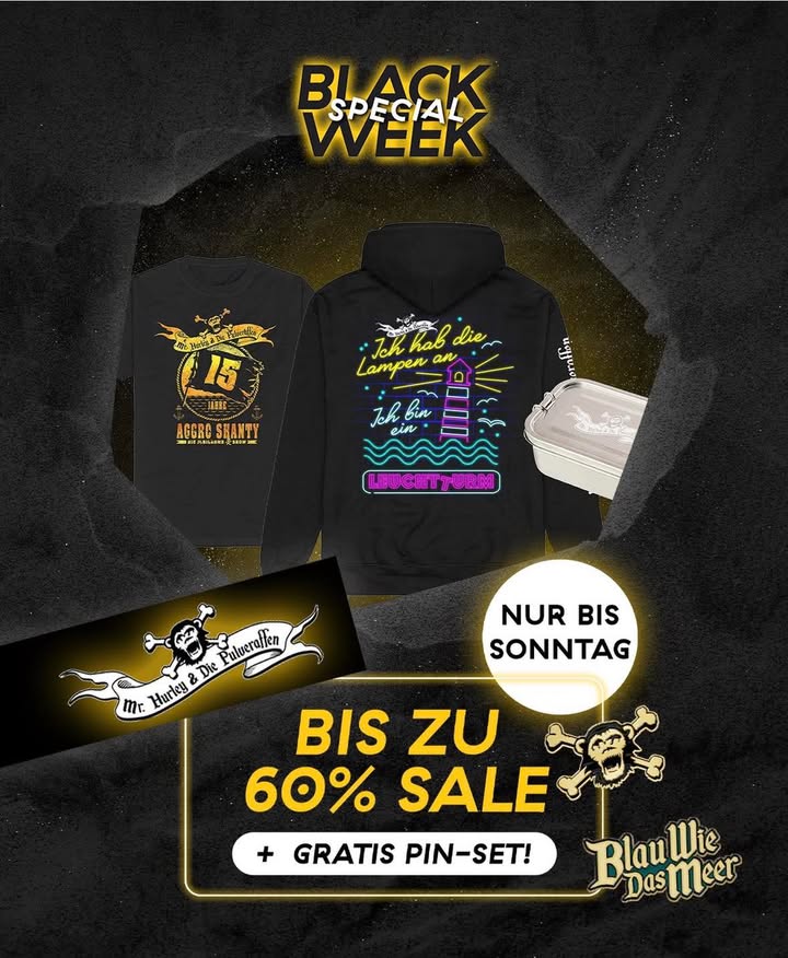 Man kennt‘s – die Taschen sind viel zu schwer von den ganzen Dublonen. Wenn‘s Euch auch ständig so geht, dann schippert mal in der Black Week rüber in unseren Shop. Haben uns ein paar Deals überlegt, um Euch das Ersparte aus den Rippen zu leihen. Gern geschehen 🫡🏴☠️